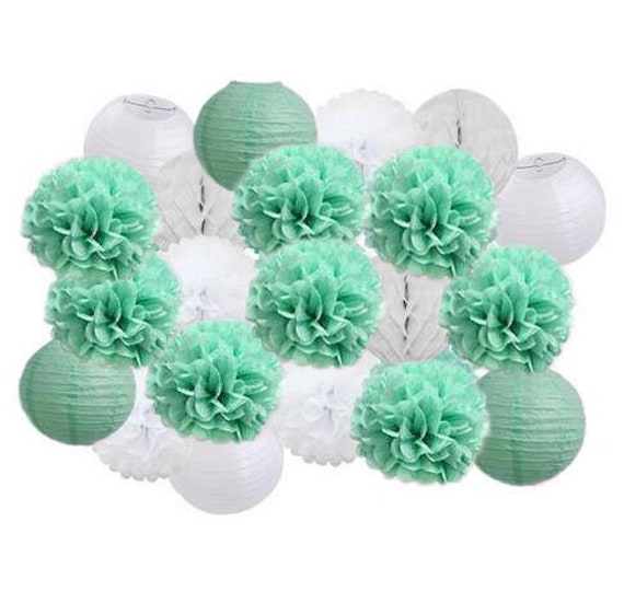 21pcs Mint Green White Tissue Pom Poms Paper Lanterns Etsy