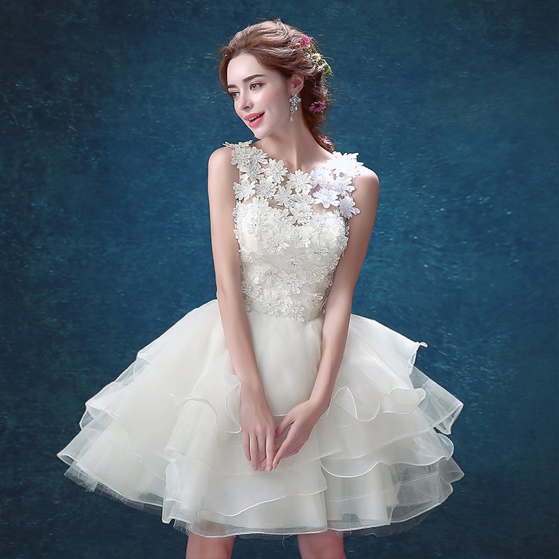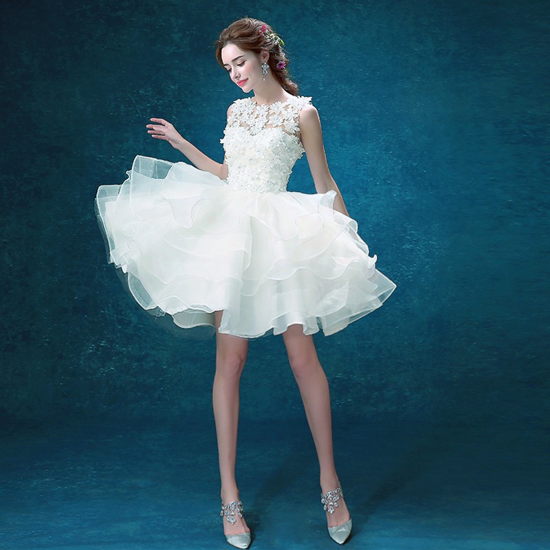 White Lace Flower Princess Bride Banquet Ball Gown Short Party