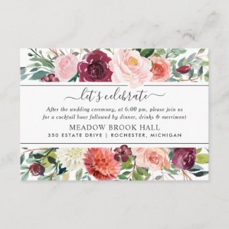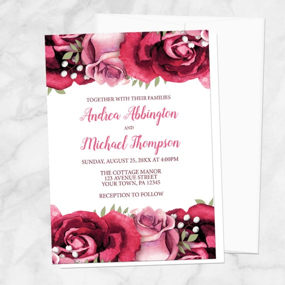 Burgundy Rose Wedding Invitations Rustic Floral Burgundy Pink Etsy