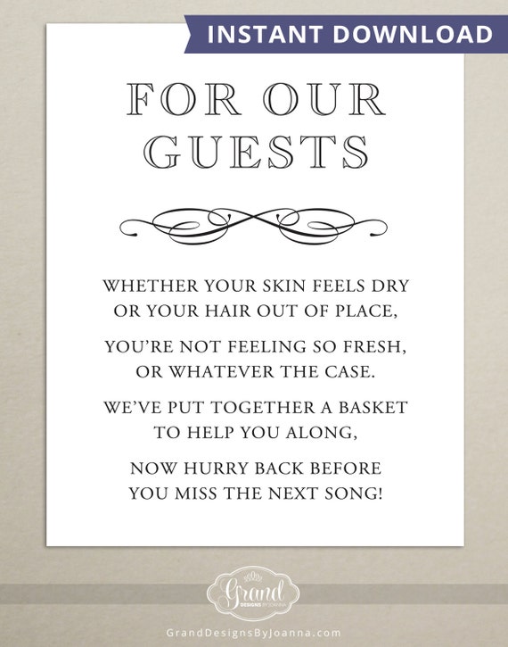 Instant Download Wedding Reception Bathroom Basket Sign Etsy