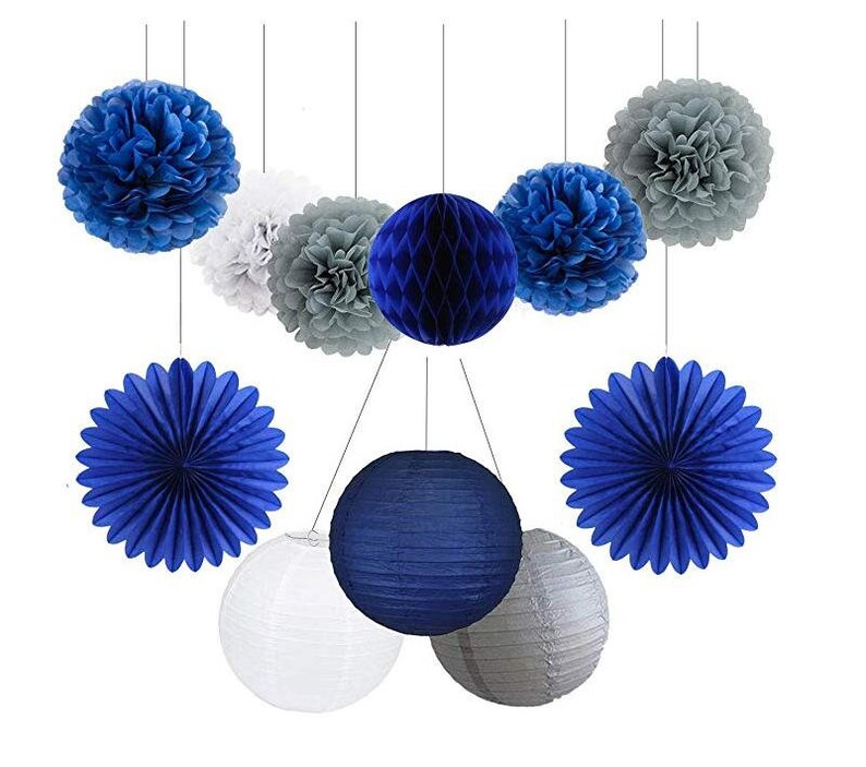 Navy Party Decor 11pcs Navy Blue Silver White Tissue Pom Etsy