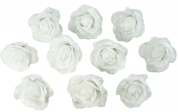 10 White Rose Heads Silk Flower Wedding Reception Table Etsy