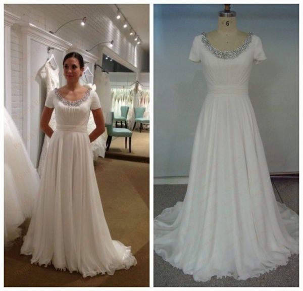 Discount Simple White Ivory Crystals Chiffon A Line Wedding