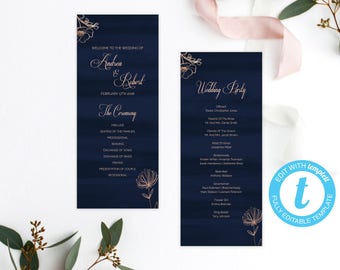 Navy Wedding Program Card Reception Program Template Program Etsy