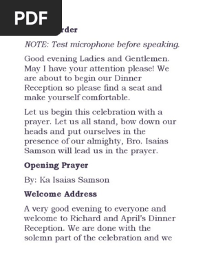 Wedding Reception Program Wording Examples Ceremony Christian Pdf