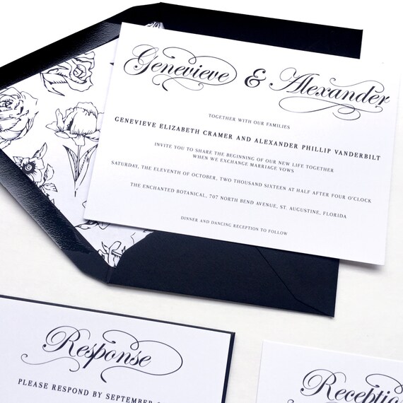 Black And White Rose Floral Wedding Invitation Suite Rsvp