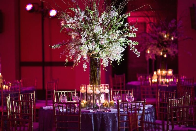 Reception Decor Photos Tall Ivory Centerpiece Red And Purple