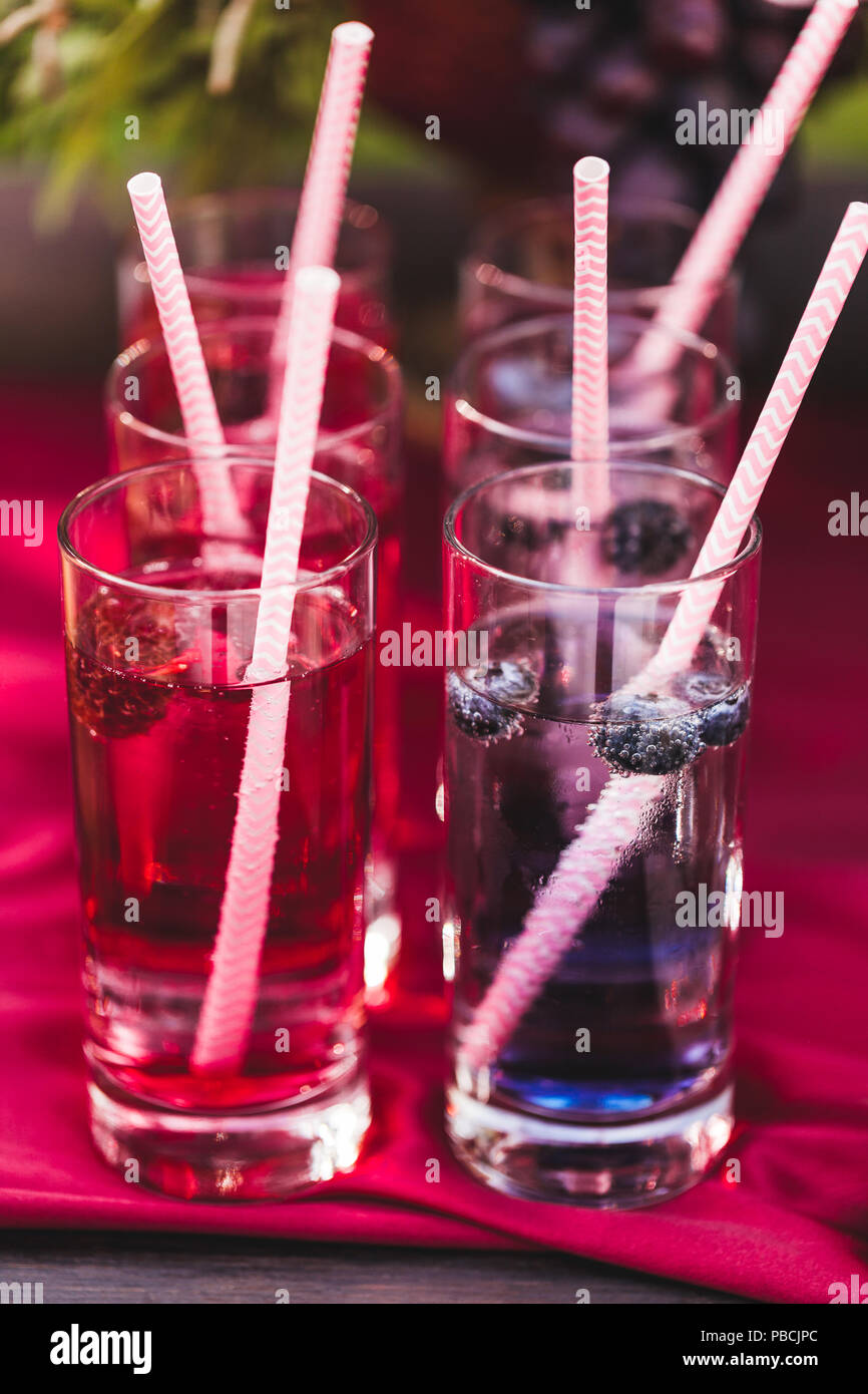 Various Cold Fresh Drinks Berries Lemonade Closeup On Wedding