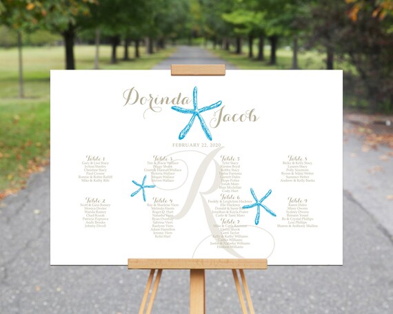 Printable Wedding Seating Chart Poster Dorindajacob Blue Etsy