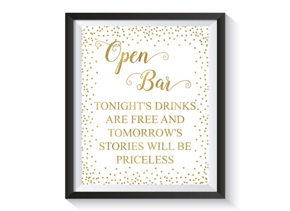 Open Bar Wedding Sign Gold Confetti Reception Bar Sign Open Etsy