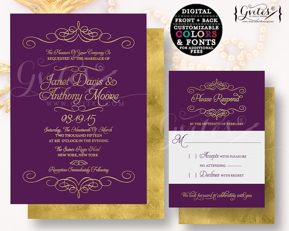 Purple Gold Wedding Invitation Modern Royal Gold Glitter